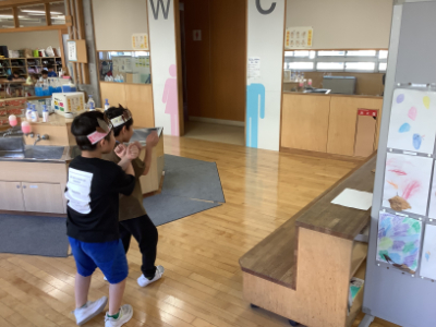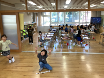 1年2組は、先日学年で行っていた図工の続きです。今日もみんなで大いに楽しんでいます。