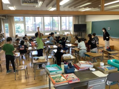 3年1組が、後期の係についての話し合いをしていました。先生が「後期の係を決めましょう。」と言うと、子どもたちが「イエーイ!」と盛り上がります。まずは班で、どんな係があるとよいかを話し合うことになりました。後期の準備もしながら活動が進められています。