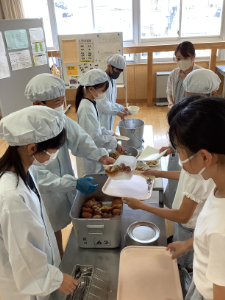 今日から給食後下校です。今日の給食は、子どもたちの人気度が高い「あげパン」「りっちゃんのサラダ」「ミネストローネ」でした。