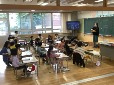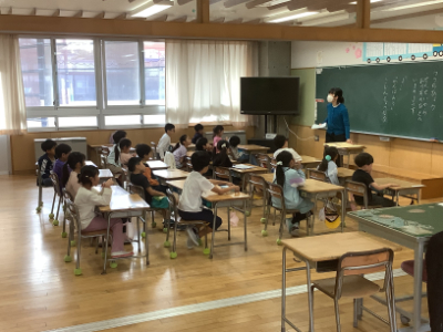 1年生は初めての「通知表」が配られます。担任の先生が子どもたちにわかりやすく通知表について説明をしていました。