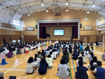 校長講話は、笹口小の目指す3つの力「可能性」「尊重」「挑戦」の中の「挑戦」についてのお話をしました。来週は、けやきっ子遠足(全校遠足)が予定されています。みんなで達成感を味わいましょう。