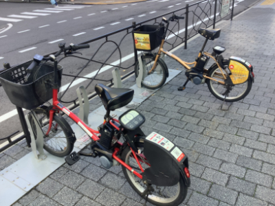 駅のレンタサイクルの中に佐渡金山バージョンのゴールドの自転車が。これは目立ちそうです^^;
