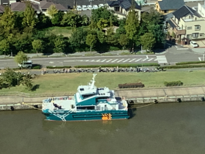 下を見ると、「みなとぴあチーム」がちょうど歩いているのが見えました。