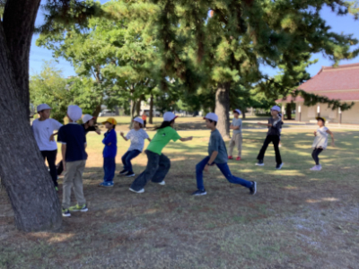 秋晴れの中、おにごっこをしたりして思いっきり遊ぶことができました。