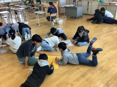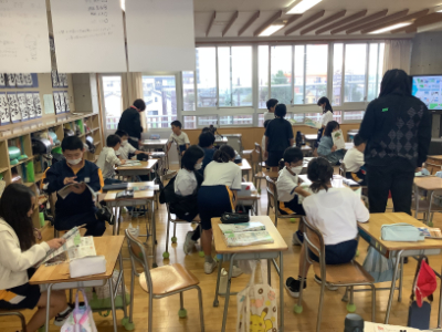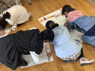 6年1組さんが、ハロウィンパーティー(秋のお楽しみ会)の準備をしていました。