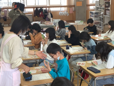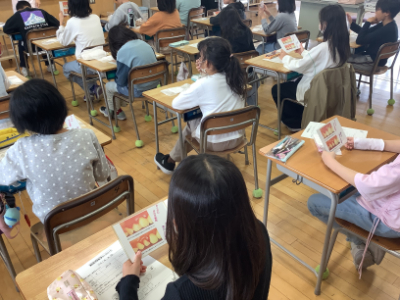 お話を聞きながらワークシートにも書き込み、理解を深めていきます。