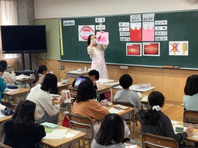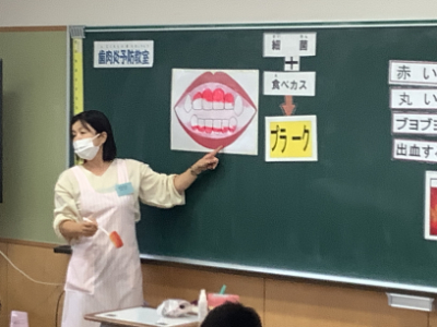 今日は、歯科衛生士さんからご来校いただき、4年生の歯肉炎予防教室を実施しました。