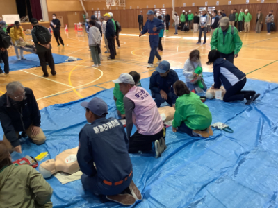 負傷者発見時の緊急対応やAEDの体験もありました。