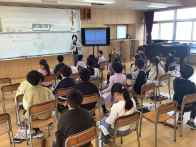3年生の音楽です。ちょうど鑑賞の学習中で、曲の中から鐘の音を探しています。音楽にのって体が動き出す子もいます。「自然と体が動く」これぞ正に音楽の力です。