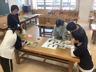6年生は、光のページェントの準備が順調に進んでいます。ニスでのつや出し作業などは、図工室で行っています。