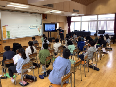 音楽室では、5年生が鑑賞の学習を行っていました。皆さんも音楽で鑑賞の学習をしたことがあると思いますが、子どもたちが関心をもって取り組む鑑賞の授業づくりは、なかなか難しいです。今日は、様々なパターンのフレーズを聞き比べながら、どんな感じに聴こえるか、どのフレーズが気に入ったかなどについて意見交換をしていました。