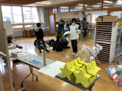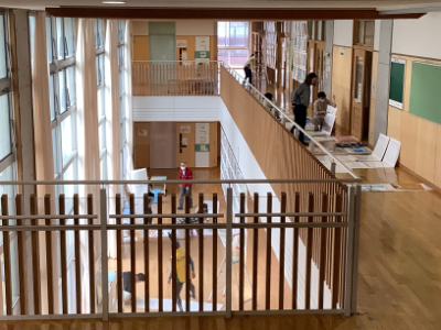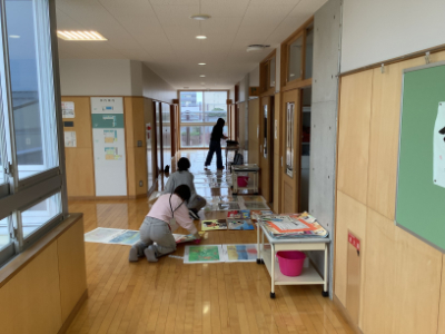 今日は、作品展・笹口祭前日です。朝から、子どもたちの作品を展示してくださるボランティアの方からご来校いただきました。ボランティアの皆様のおかげで子どもたちの作品が校内に展示され、校内がとても素敵な雰囲気になりました。
