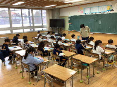 子どもたちはその間、学習に専念することができます。1年生は漢字の学習をしていました。4月からひらがな、カタカナの練習を始め、今は漢字の練習をしています。1年生の皆さん、がんばっていますね。