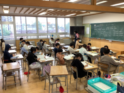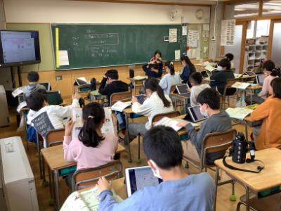 5年生は、家庭科です。手ぬいと比較しながらミシンの特性について学習していました。まずは基本的なことを知識として学び、実習への移っていきます。