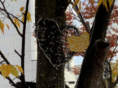 これは・・・笹口小学校の子どもたち考案のキャラクター「ぺーくん」ではないですか。これが、実行委員長さんが言っていた工夫されたイルミネーションのひとつかもしれません。点灯されるのが楽しみですね。