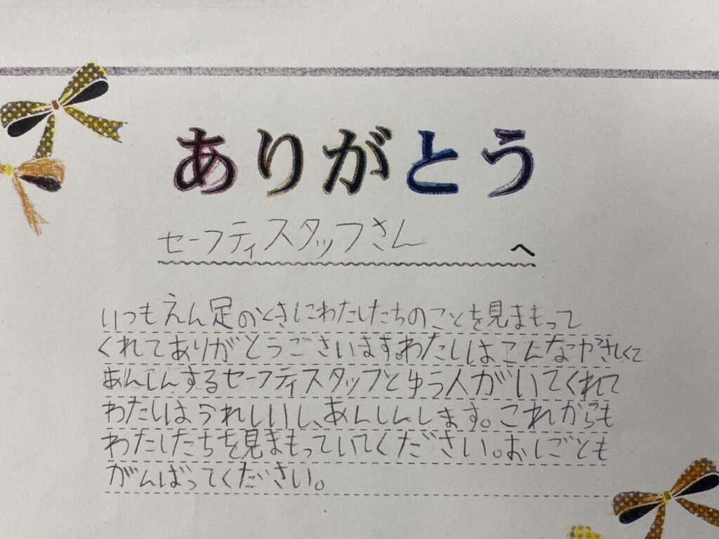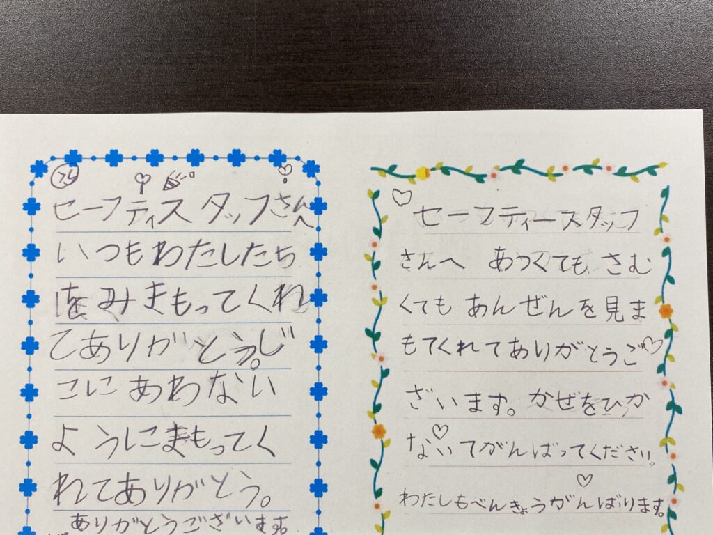 また今日は、セーフティスタッフの皆様に1・2年生からの「感謝のお手紙」も配られました。お手紙を読んだセーフティスタッフの会長さんは感激されて元気が出ましたとおっしゃってくださいました。