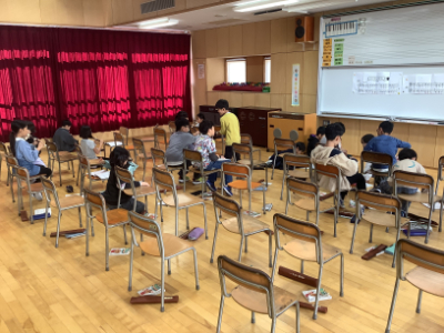 3年2組は音楽室でリコーダーの学習です。「メリーさんのひつじ」の練習です。なつかしさを感じる教材です。