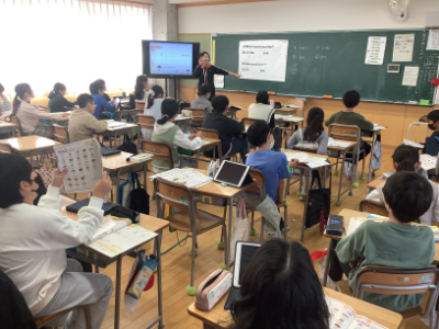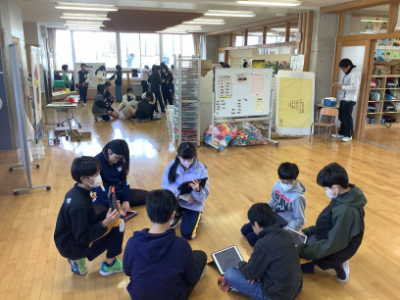 そんな秋も深まる中、学校の中では今日も子どもたちが元気に活動です。1年1組は、タブレットの写真を見せながら友だちに説明する学習です。そしてそれを動画にとっていました。