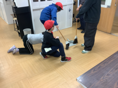 そして、今日から縦割り班清掃の清掃場所が新しい場所になりました。職員室・校長室の清掃の班の子どもたちがいっしょうけんめいお掃除をしています。