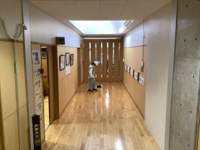 校長室前の廊下もきれいにしています。ちなみに私も一緒に清掃をしています。(笑)