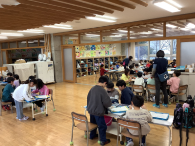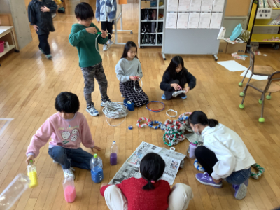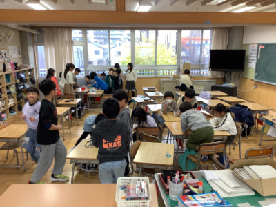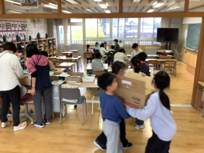 2階フロアは、「けやきっ子祭り」の準備一色です。これは4年生です。小道具をいろいろと作成しています。この準備も楽しいんですよね。