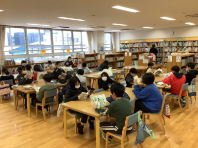 1~4年生は、学年での活動が組まれていましたが高学年はどうでしょう。6年2組は図書室にいましたが、静かに入ってみると、物音ひとつしない静寂の中で読書をしています。カメラのシャッター音が申し訳ないと思うほどの静けさです。