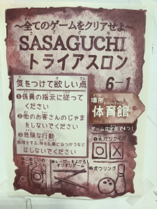 部屋の前でルール説明です。(部屋の中の写真は薄暗いためありません)薄暗い迷路のコースが作られていて、問題に正解すると迷路のゲートが開いて次のポイントへ進めます。強者は、10数秒でクリアしたとか。必死でがんばりましたが、1分以上かかりました^^;