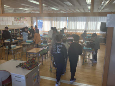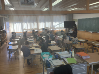 1年2組は、各自でやり残したことがないか確認し、お休みに入る前の準備をしていました。子どもたちは、こういったところでも年の瀬の雰囲気を感じていきます。