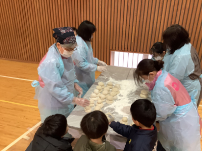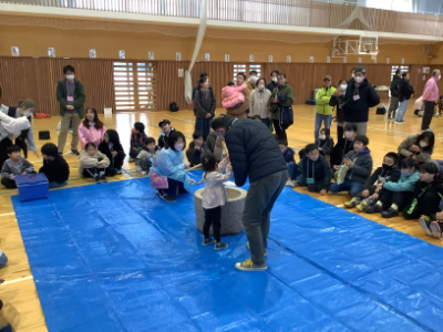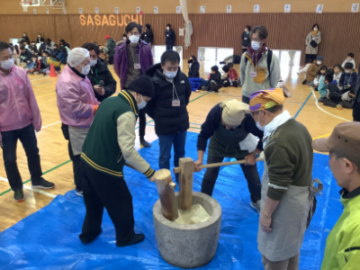 そして、たくさんの子どもたちや保護者・地域の方が集まり、もちつき大会が始まりました。