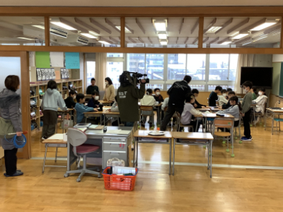 今朝は、NST新潟総合テレビ様の取材が入りました。その様子は11時台と18時台のニュースで紹介されるとのことでしたので、11時台のニュースは録画して、給食時間に全校で視聴しました。