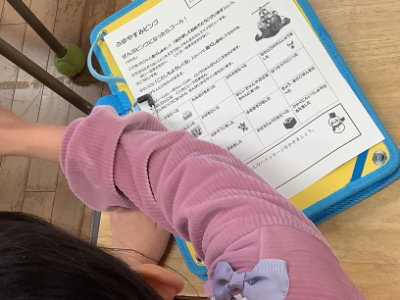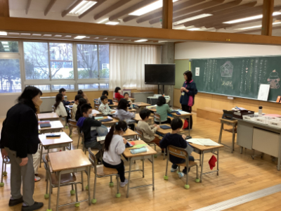 2年1組は、「ふゆやすみビンゴ」です。まずはおとなりさんと、次は相手を変えて行っていました。ゲームをしながら自然とコミュニケーションが生まれます。