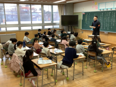 4年1組も、冬休みの話題から今後の予定について見通しをもつための時間です。4年生は先生の話をしっとりとした様子で聞いています。高学年に向けての3か月のスタートです。