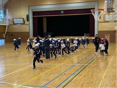 体育館も今日はいつも以上に冷え込んでいましたが、1年生はそんな寒さもなんのそので元気に運動をしていました。