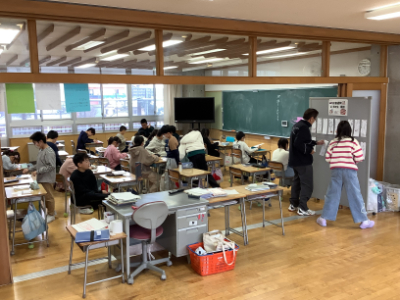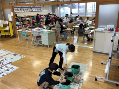 6年1組は、卒業文集の清書前の確認です。それぞれの思いが伝わってくる素敵な作文が集まりました。アルバムの完成が楽しみですね。