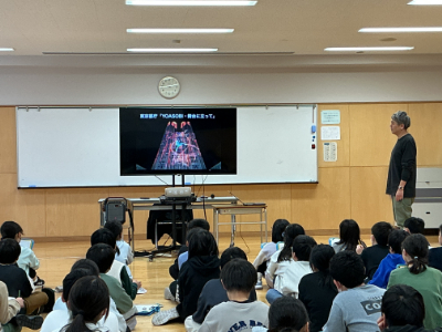 この後、丸山さんは5時間目という少し眠くなる時間帯を考慮し、丸山さんが手がけたプロジェクションマッピングの映像を流しながらお仕事の紹介をしてくださいました。
