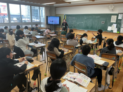 資料が完成したグループは、発表のリハーサルをしていました。学校教育や子どもの遊びについて調べたグループの発表を聞きましたが、現代と比較したりして戦時中の様子がよく分かり、先生からも賞賛されていました。