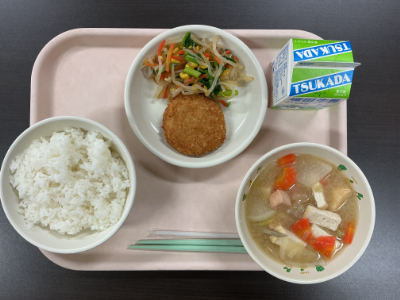 そして今日は給食週間第3弾の献立です。「新潟を味わおうこんだてパート2(ごはん、牛乳、鮭のかす汁、さといもコロッケ、とうなのおひたし)」でした。新潟の発酵食品「酒かす」や今が旬の地場産物「さといも」「冬菜」が使われています。鮭のかす汁で子どもたちも体があったまったと思います。