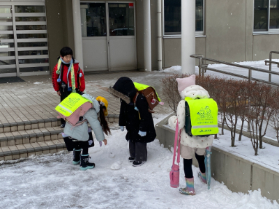 子どもたちにとって雪は魅力的です。ついつい雪をかまってしまいます。学校の中は安全ですが、通学路では雪で遊ばないでくださいね。
