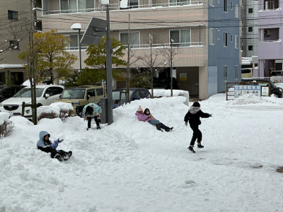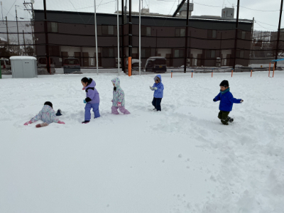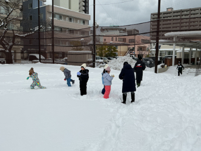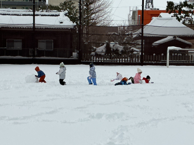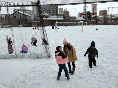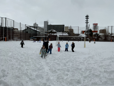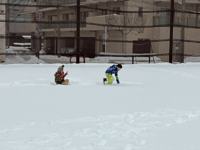 子どもたちの歓声が、雪のグラウンドに響きます。