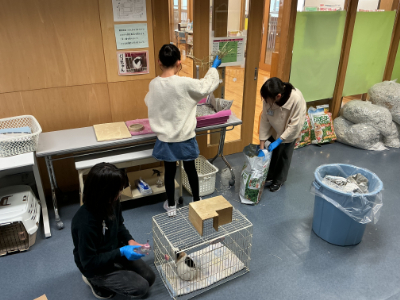 また、委員会の仕事をしている子たちもいます。これは5年生の飼育委員会の子たちです。責任をもってしっかり仕事をしていて立派ですね。