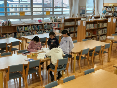 雪遊びをしていない子は、何をしているのでしょう。図書室で過ごしている子もいました。