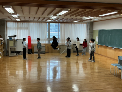 空き教室で長縄跳びをしている子もいました。
