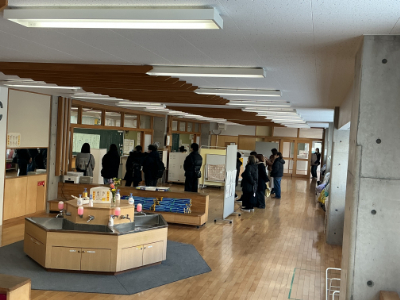 そして、5時間目の授業が近づくと、続々とお家の方が来校してこられます。玄関でお家の人を待っている子どもたちもいました。保護者の皆様、足元の悪い中、ありがとうございました。