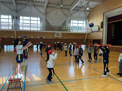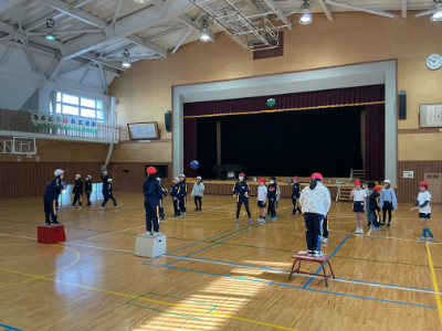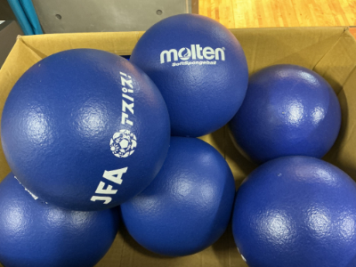 ある4年生の子から、今朝、「2時間目の体育を見に来てください。」と、ご依頼があったので行ってみました。今日の体育は、日本サッカー協会さんから職員研修の時にいただいたボールを使った運動です。このボール、柔らかくて手触りもよく、なかなかの優れモノなんです。