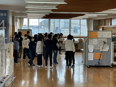 「建国記念の日」明けの木曜日です。今朝は、太陽ものぞいて気持ちのよい朝となりました。ここ数日で道路の雪もかなりとけました。今日は2年生の学級閉鎖が明け、全学年が登校です。全校の欠席数は減りましたが、引き続き気を付けていきましょう。