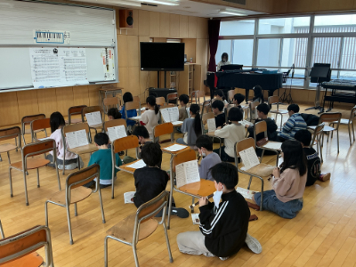 3年生は、リコーダー奏の練習です。最初に階名で歌ってからリコーダー演奏に入ります。曲目は定番と言ってもいい名曲「エーデルワイス」です。練習した記憶がある方も多いと思います。