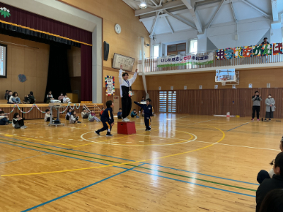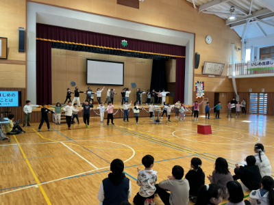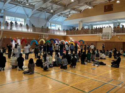 そして、6年生から在校生へのプレゼントです。在校生は、あこがれの6年生が何をしてくれるのか期待して待ちます。