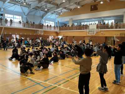 そして、2年生によるオープニングセレモニーです。素敵なあいさつの後、「カリスマックス」の元気なダンスです2年生のおかげで六送会のオープニングが大いに盛り上がりました。