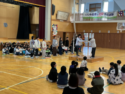 6年生の皆さん、1年間、学校のリーダーとして全校を導いてくれて大変ありがとうございました。卒業までの残りの時間は、少し自分たちのことを中心に考えて、素敵な卒業式を迎えてください。ご来校いただいた5・6年生の保護者の皆様、ありがとうございました。