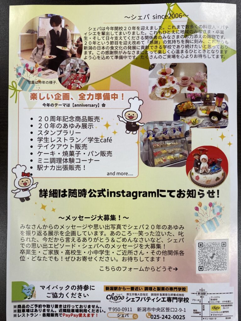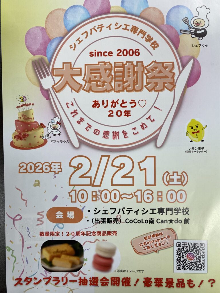 明日は、いつもお世話になっているシェフパティシエ専門学校さんのイベントが開催されます。お時間がある方はいかがでしょうか。